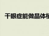 大家好,乐天来为大家解答以下的问题,干眼症能做晶体植入吗,干眼症能治愈吗很多人还不知道,现在让我们一起来看看吧!1、干眼症一般难以 浏览全文>>