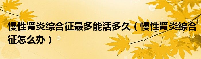 慢性肾炎综合征最多能活多久(慢性肾炎综合征怎么办)