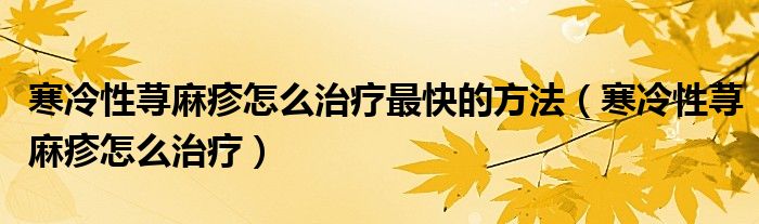 寒冷性荨麻疹怎么治疗最快的方法(寒冷性荨麻疹怎么治疗)