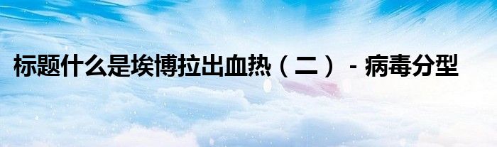 大家好,乐天来为大家解答以下的问题,标题什么是埃博拉出血热,二-病毒分型很多人还不知道,现在让我们一起来看看吧!