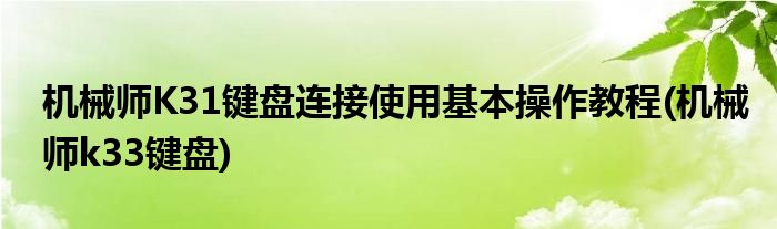 机械师K31键盘连接使用基本操作教程(机械师k33键盘)