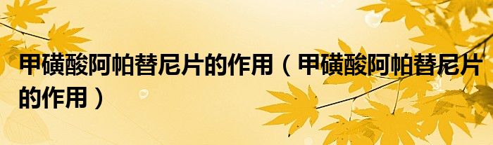 甲磺酸阿帕替尼片的作用(甲磺酸阿帕替尼片的作用)