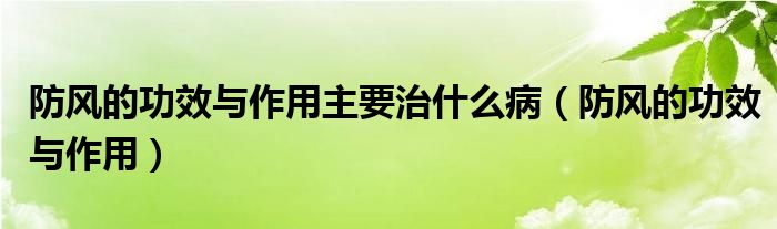 防风的功效与作用主要治什么病(防风的功效与作用)
