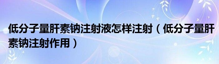 低分子量肝素钠注射液怎样注射(低分子量肝素钠注射作用)