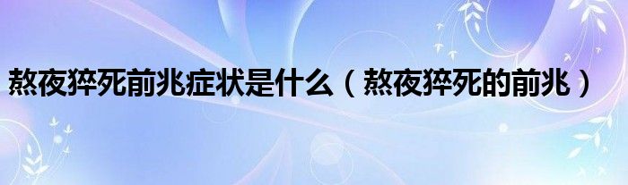熬夜猝死前兆症状是什么(熬夜猝死的前兆)