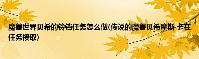 魔兽世界贝希的铃铛任务怎么做(传说的魔兽贝希摩斯 卡在任务接取)