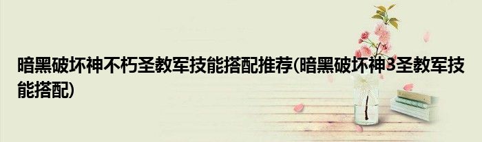 暗黑破坏神不朽圣教军技能搭配推荐(暗黑破坏神3圣教军技能搭配)