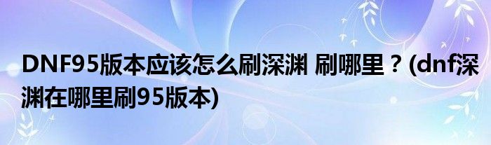DNF95版本应该怎么刷深渊 刷哪里?(dnf深渊在哪里刷95版本)